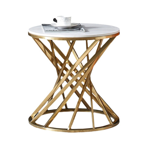 Luxury Living Room Small Size Round Coffee Table Rock Plate Gold Stainless Steel Sofa Side Table Apartment Corner End Table