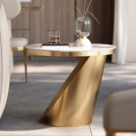 Salotto di lusso di piccole dimensioni tavolino rotondo piatto di roccia oro in acciaio inossidabile divano tavolino d'angolo appartamento tavolino
